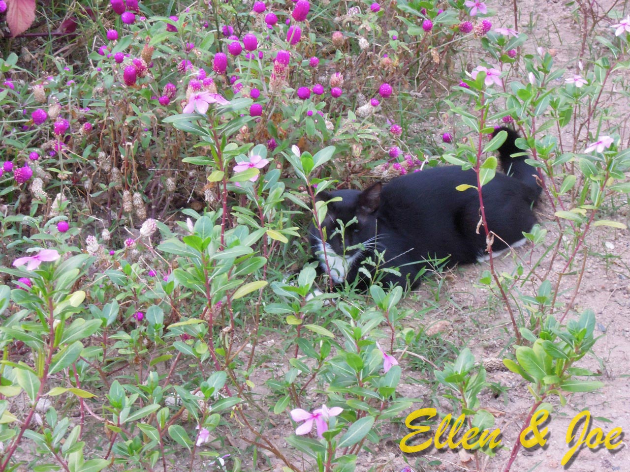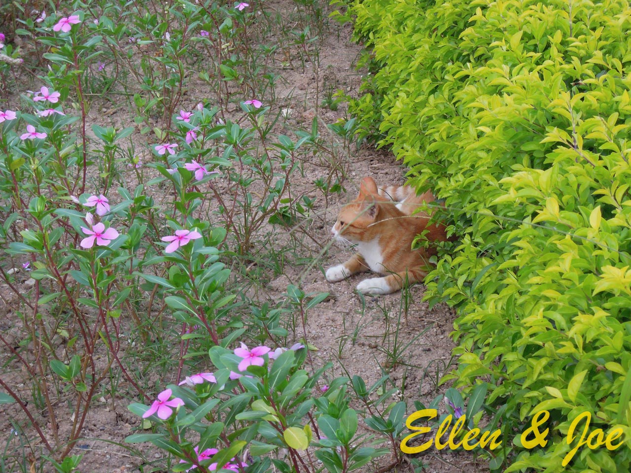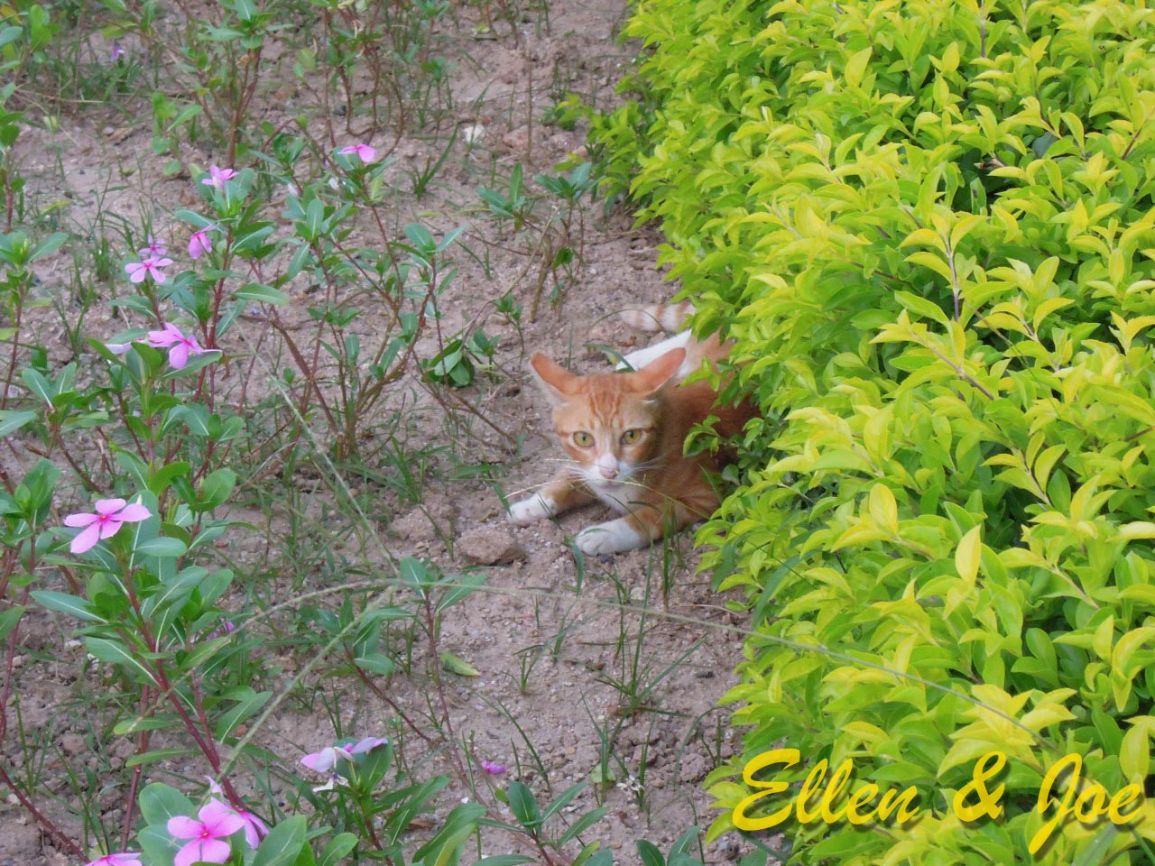 一去到就見到狸貓一家,當然要大合照啦!他們的花園很漂亮。
