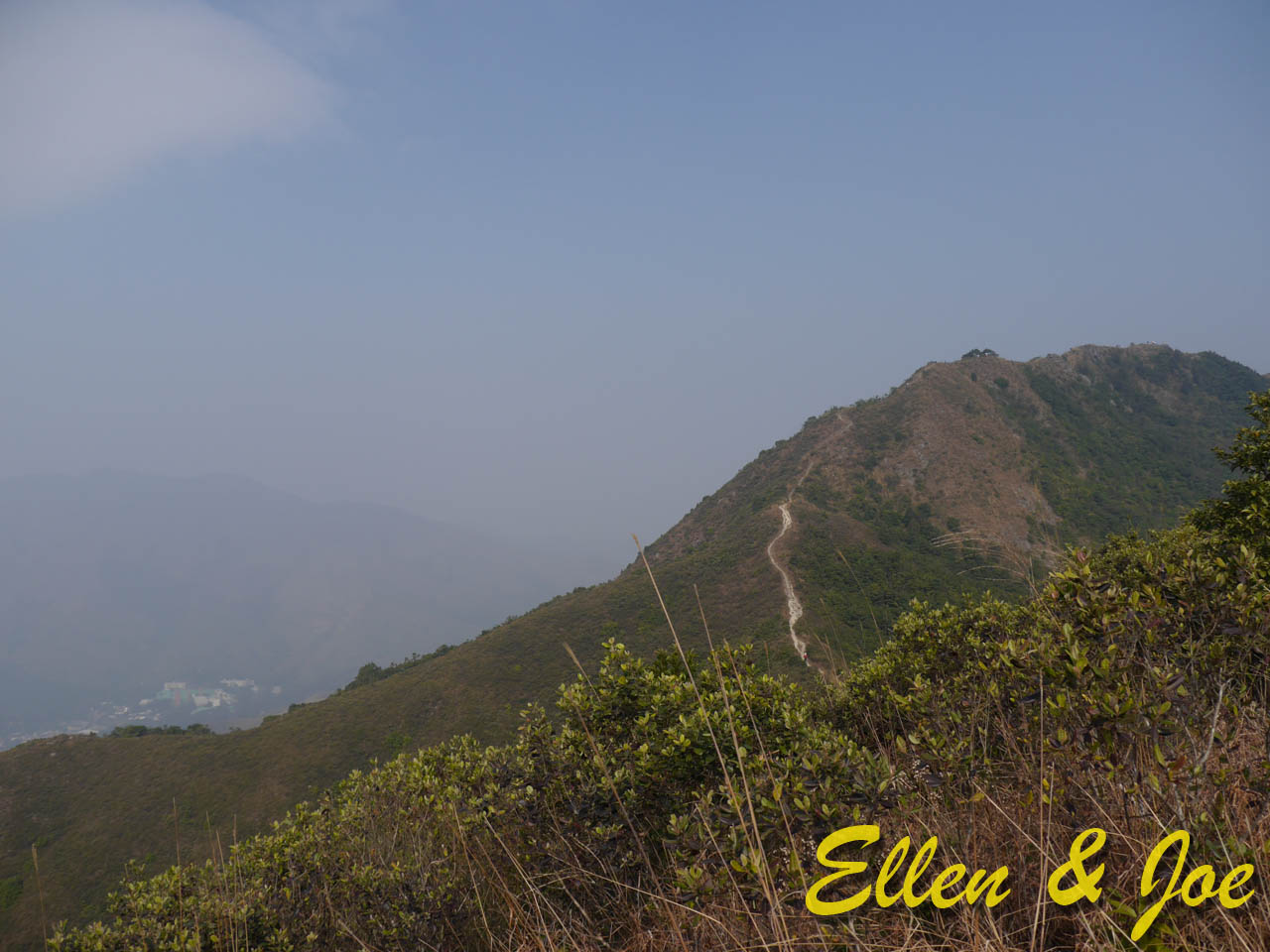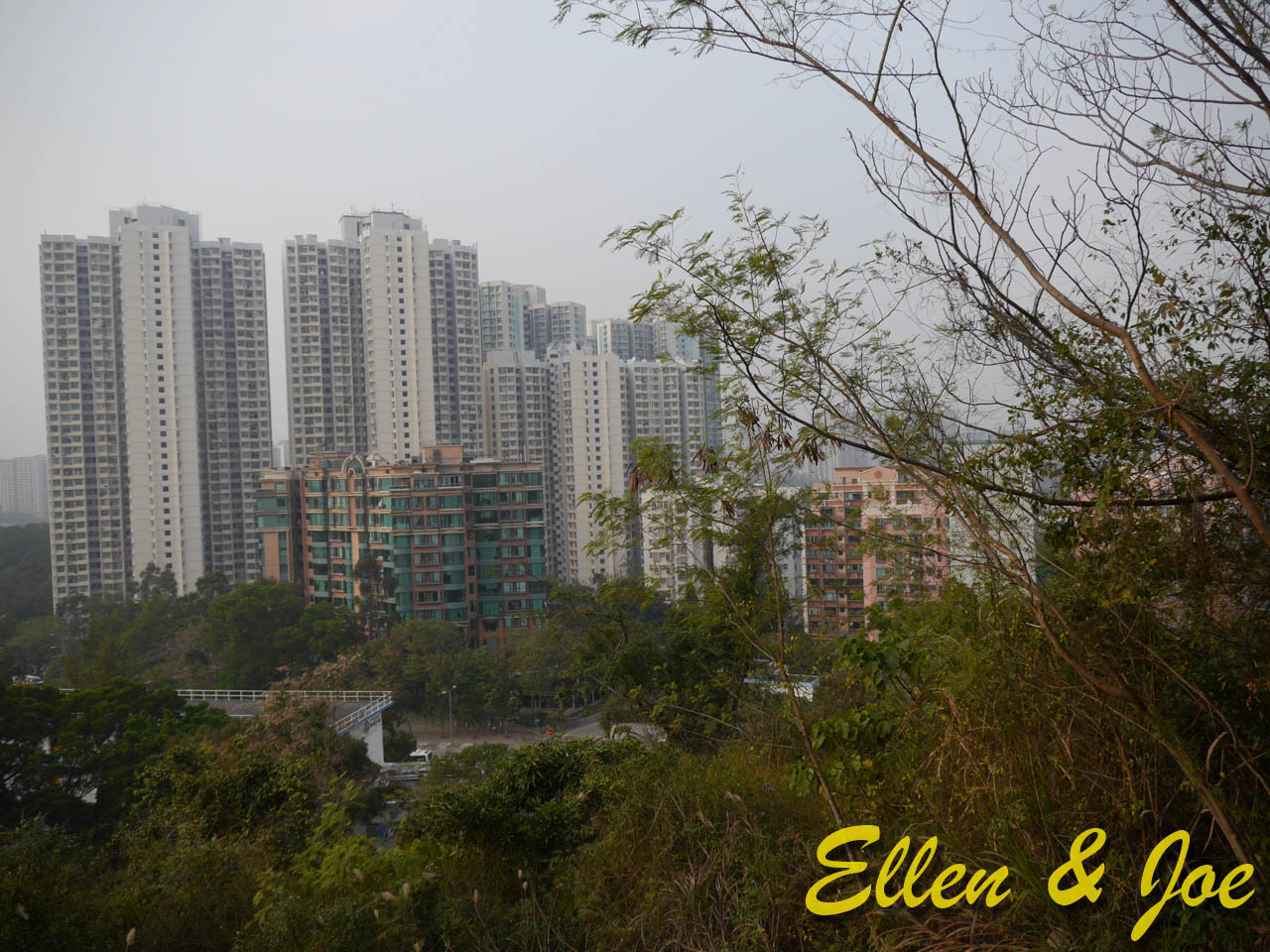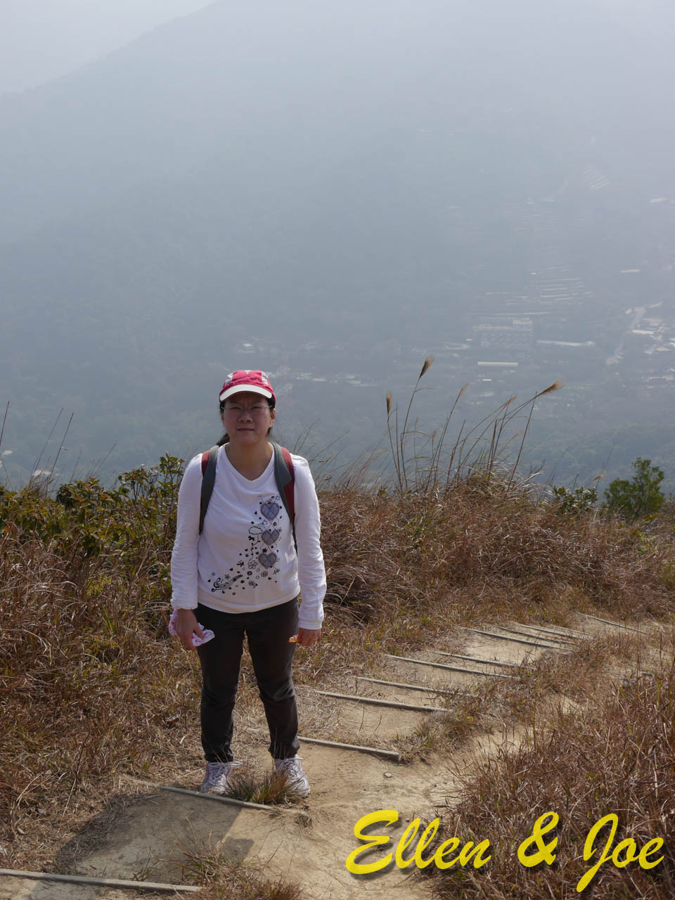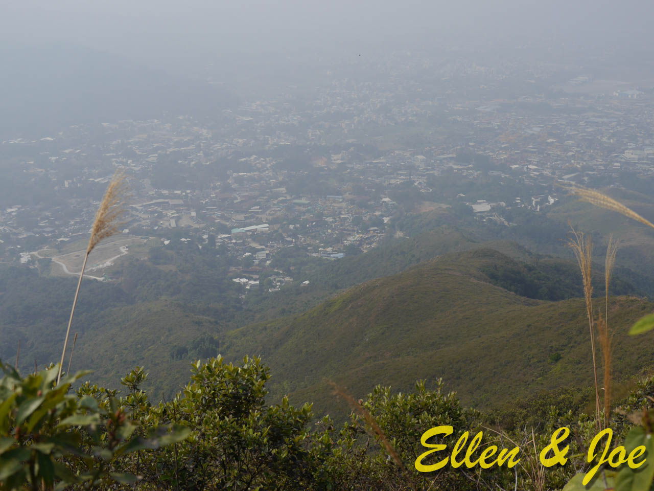 上到中途,回望山下景色,但係矇矇地