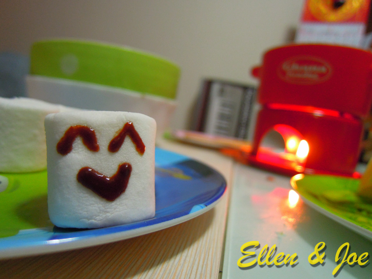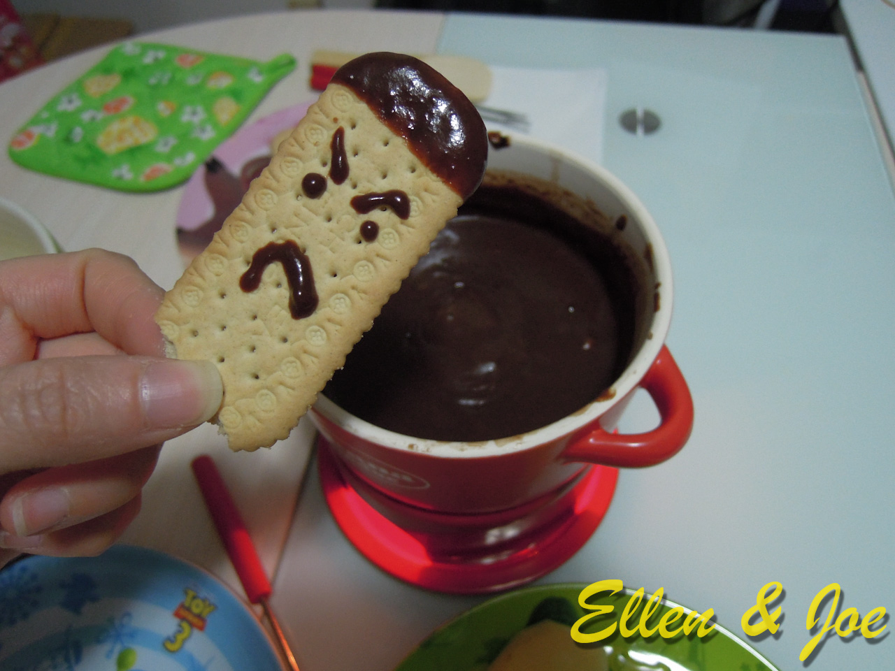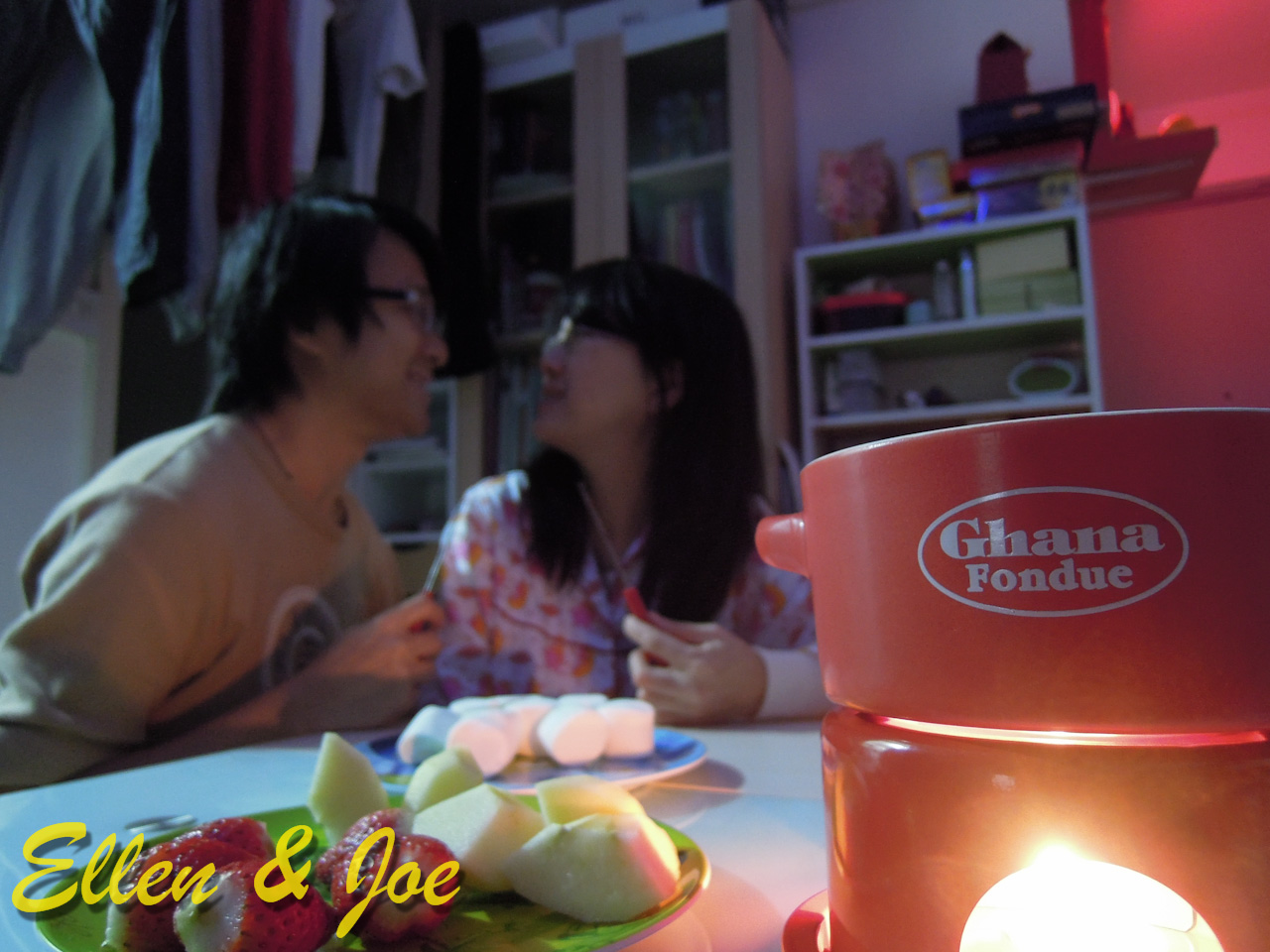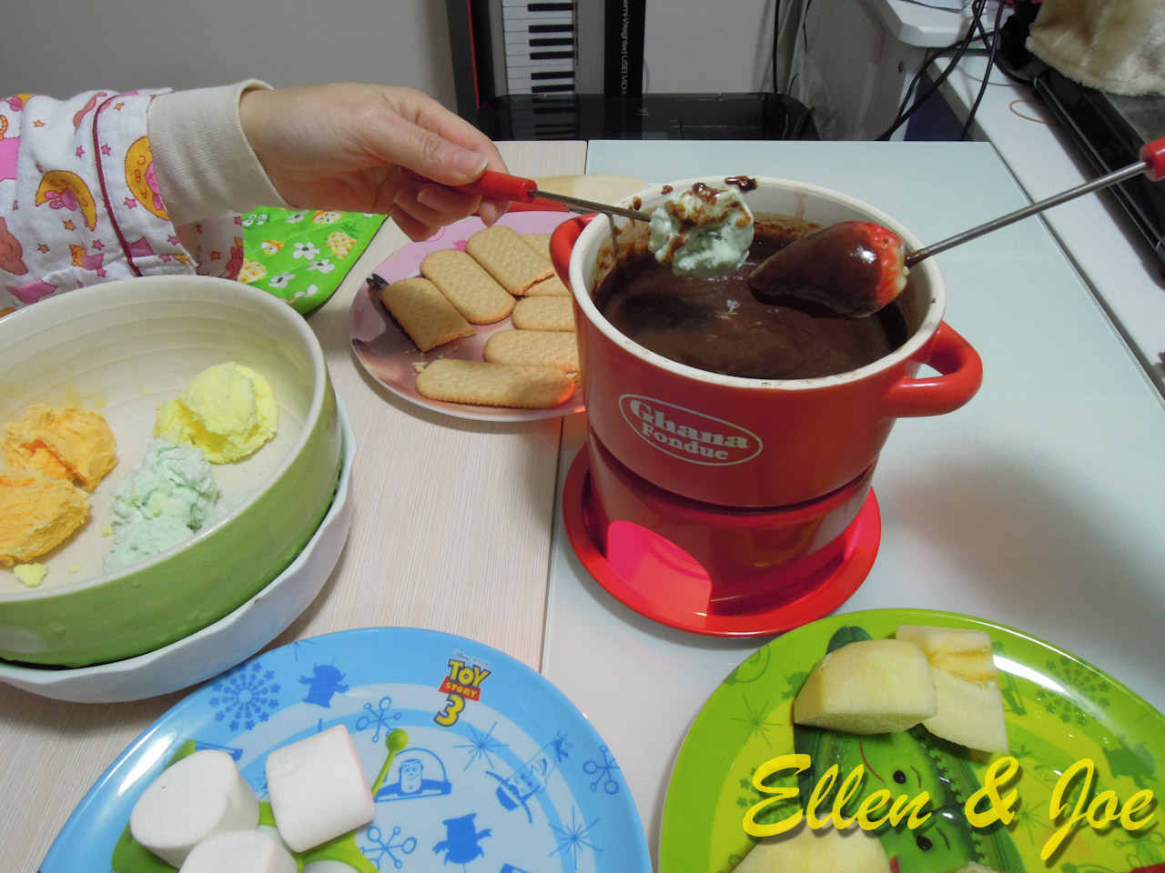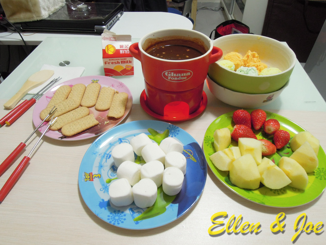 婚後第一個情人節, 今晚o既節目係… 好玩又好味的romantic朱古力火鍋 煮溶d朱古力, 擺好d野食就開餐喇 有好多野食, 有餅乾, 棉花糖, 生果, 雪糕… 乜都dip d 朱古力, 好好味 🙂 これは元気餅です 我整的”大嘴”, 笑得好開心 殘忍的一刻, 腦漿迸裂 orz 今晚實在有太多野食喇, 食到超飽 經驗分享: – 奶唔好落咁多, 如果唔係要落好多朱古力先夠”杰” – 棉花糖千祈唔好同雪糕一齊食, 真係滯到傻 – 雪糕唔好揀牛奶公司的, 太軟, 難”筆”又難拮 – 多d生果都唔緊要 ============================== 後記: 老婆出的IQ題: 猜一人物(來自日本的)