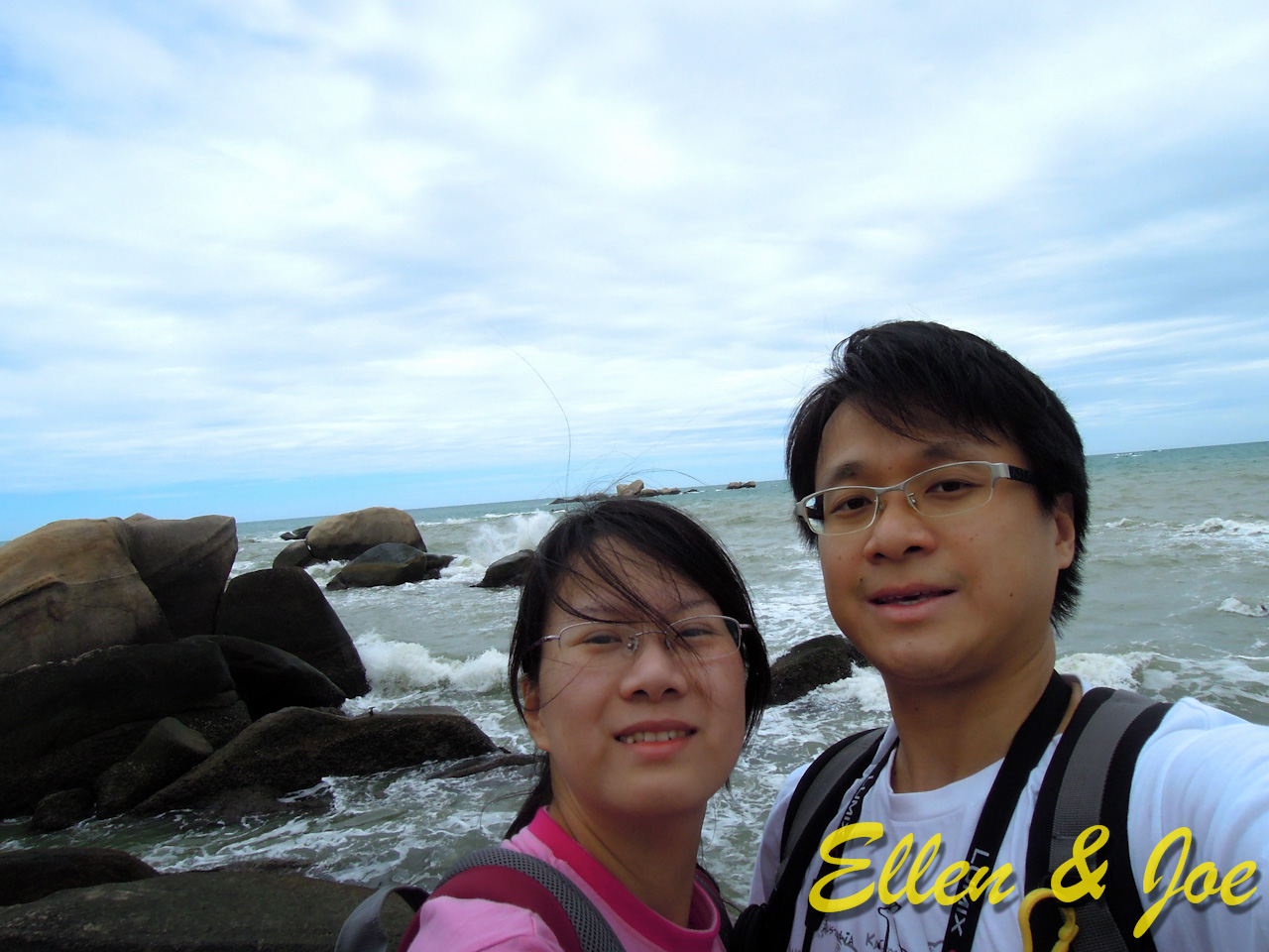 海上亂石景前的自拍